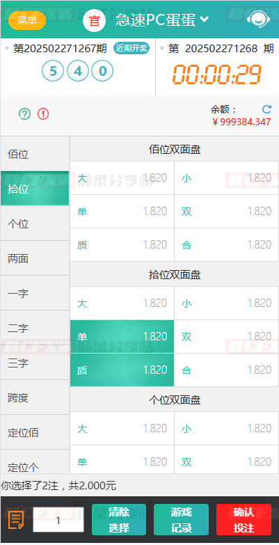 内置多组系统彩算法