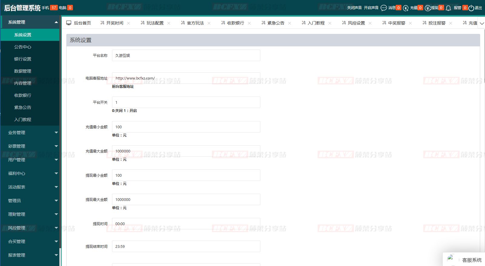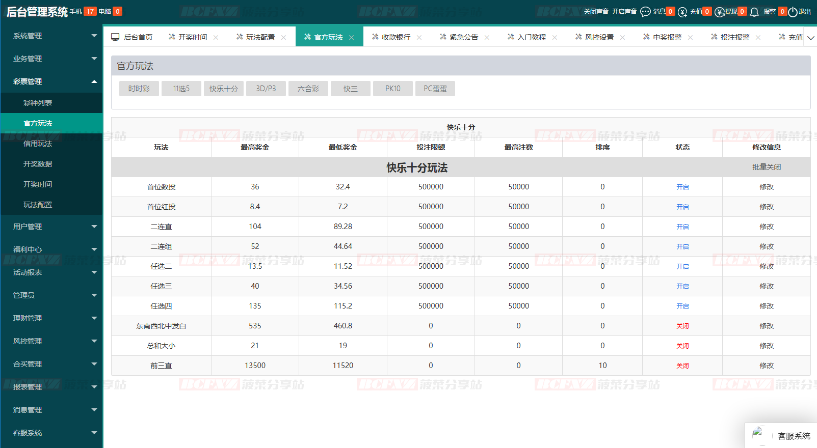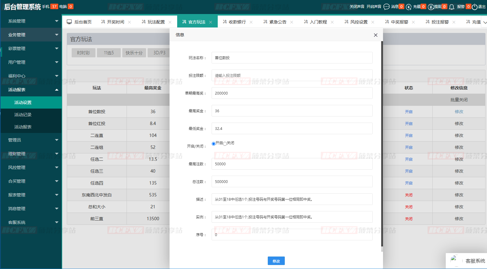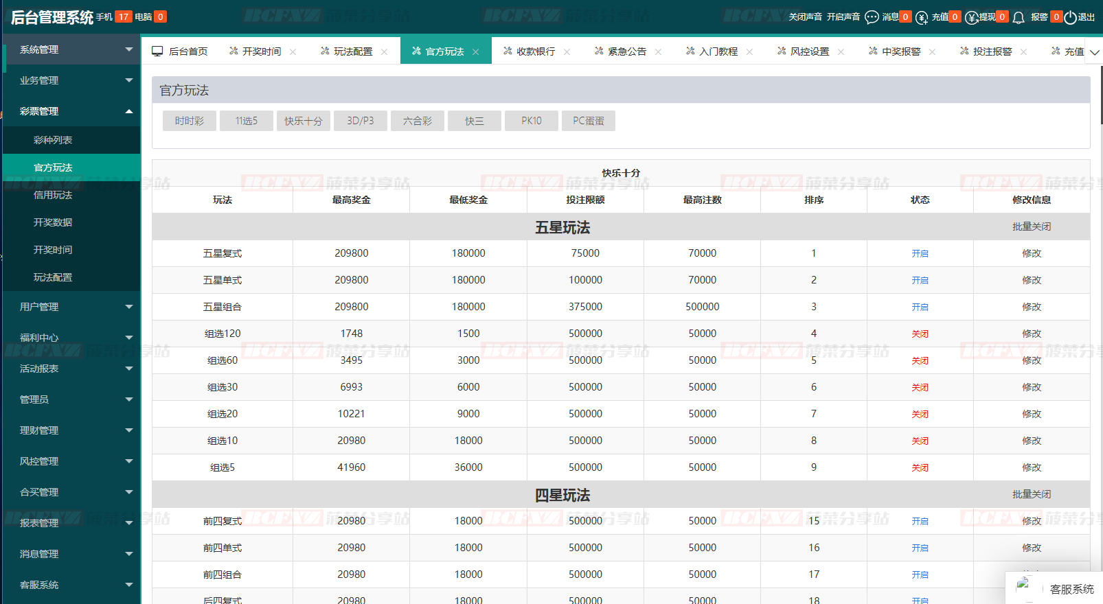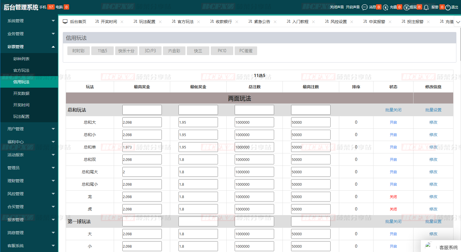 开奖/赔率/玩法均可后台修改