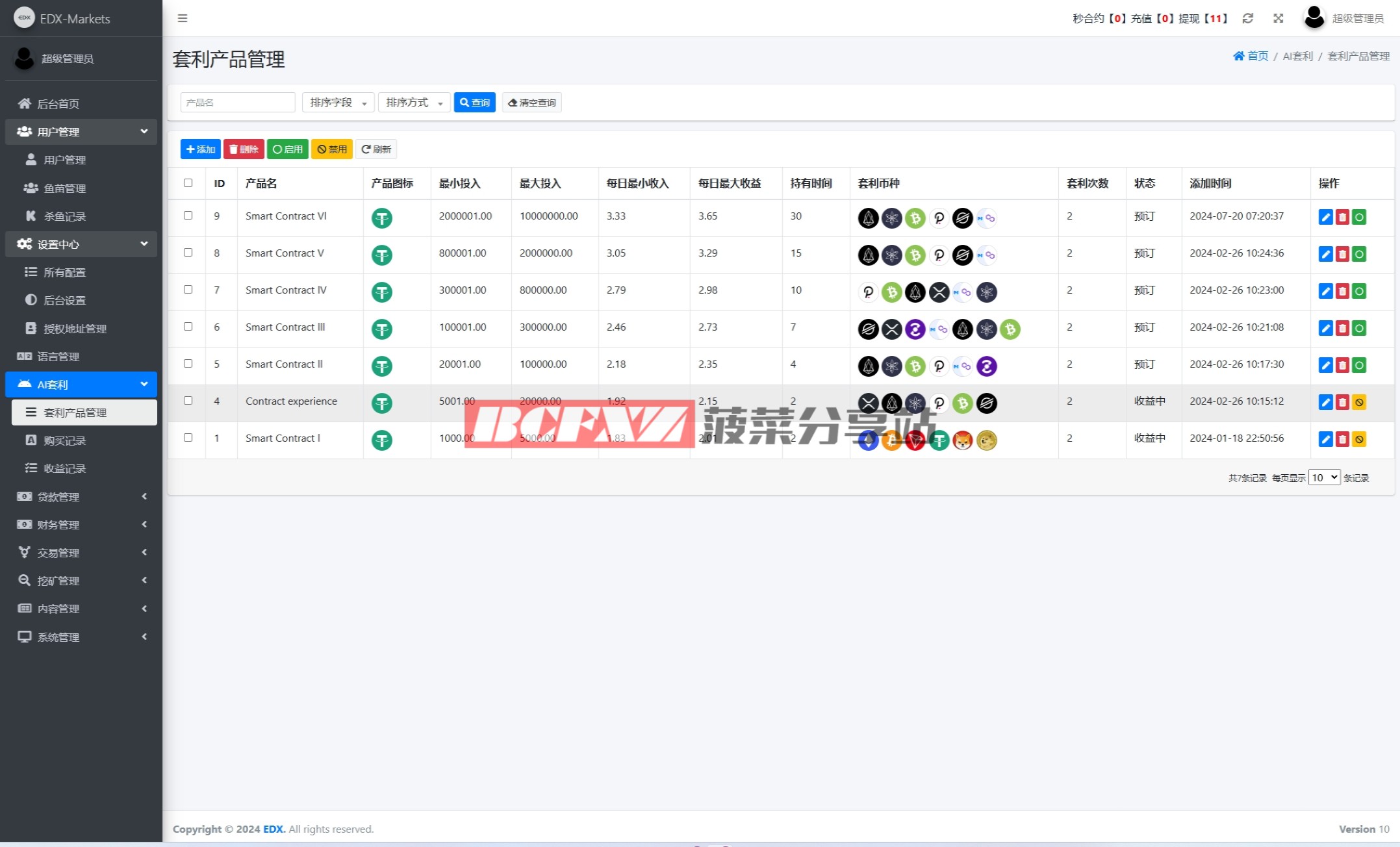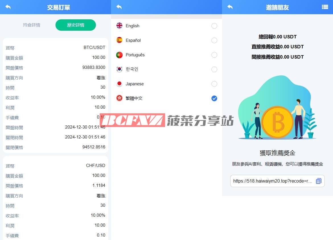 系统功能:秒合约交易、套利、矿机、借贷等功能