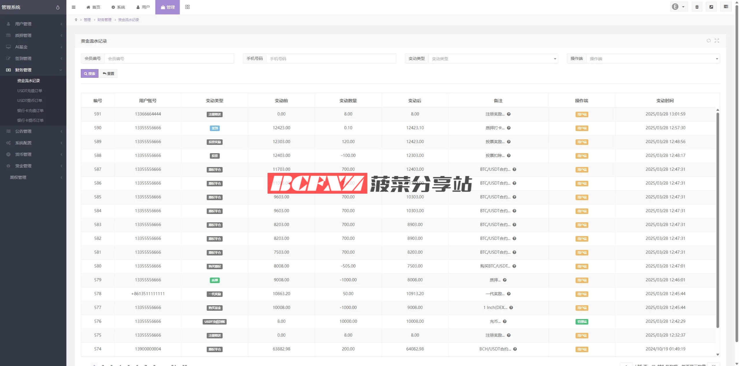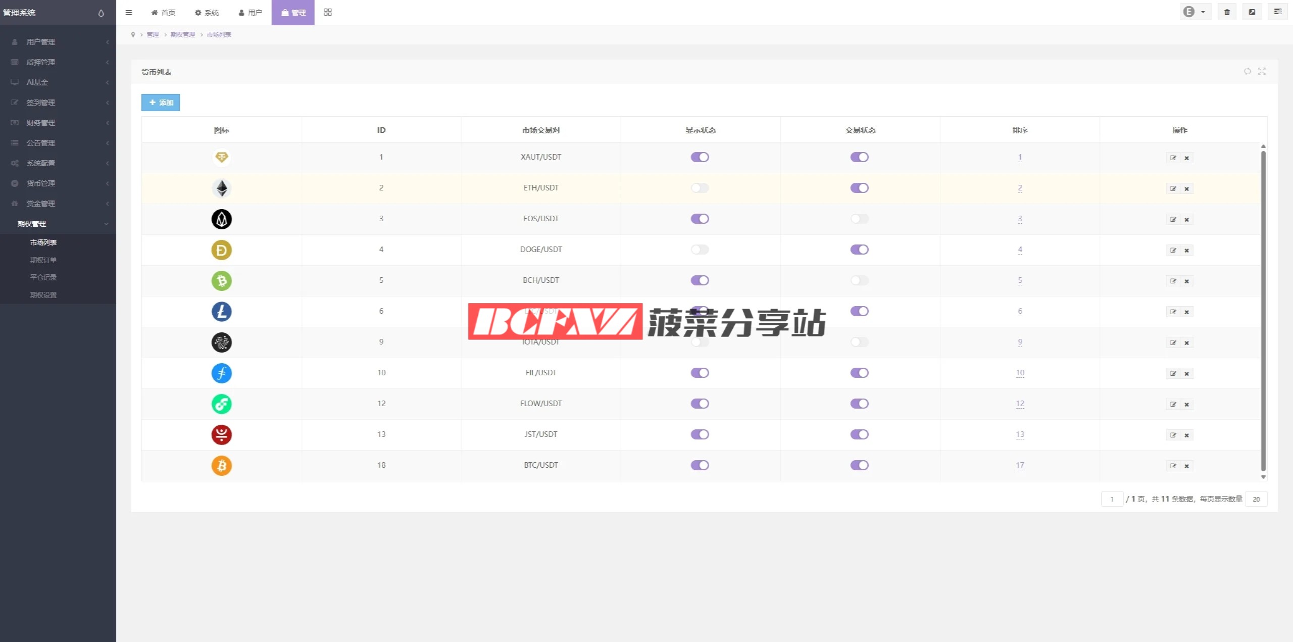 行情数据实时展示,支持常规充提操作。