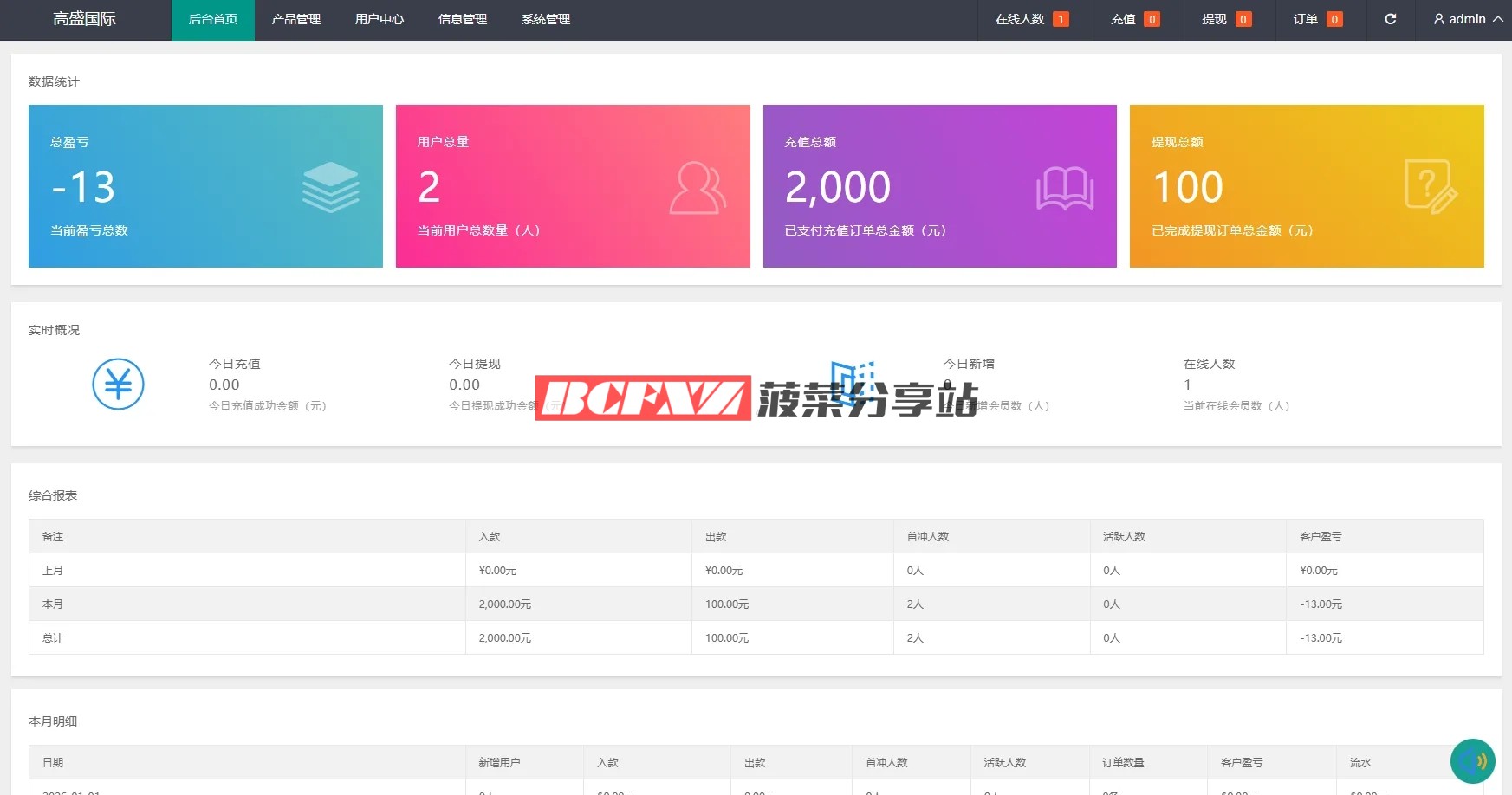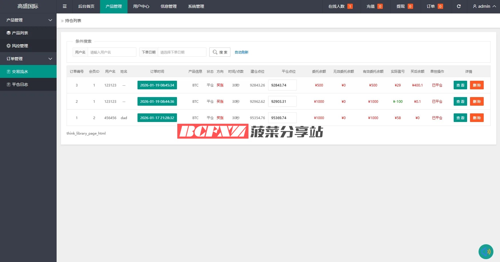 后台可查看账户流水、冻结记录及收益情况