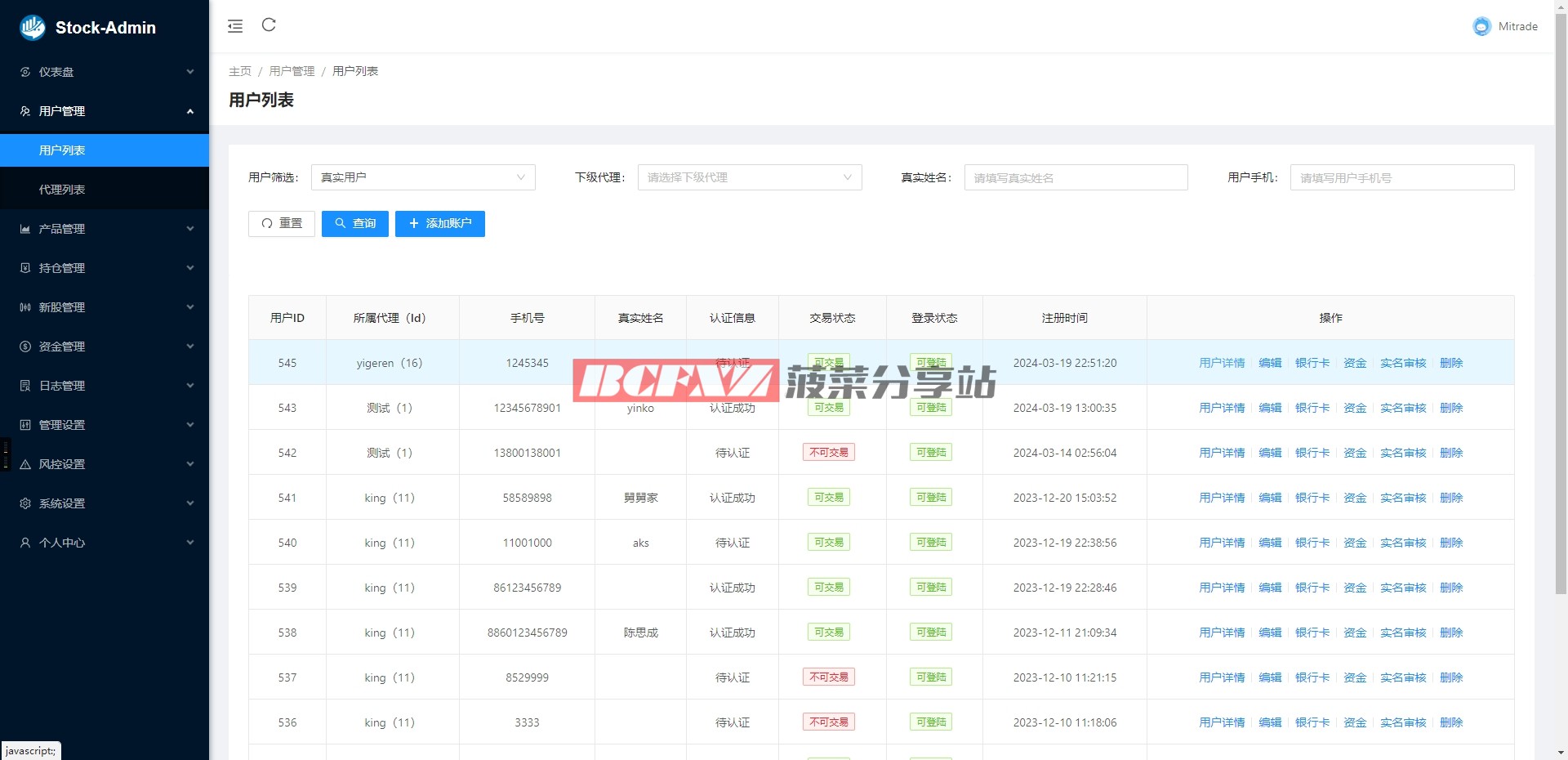 代理后台系统