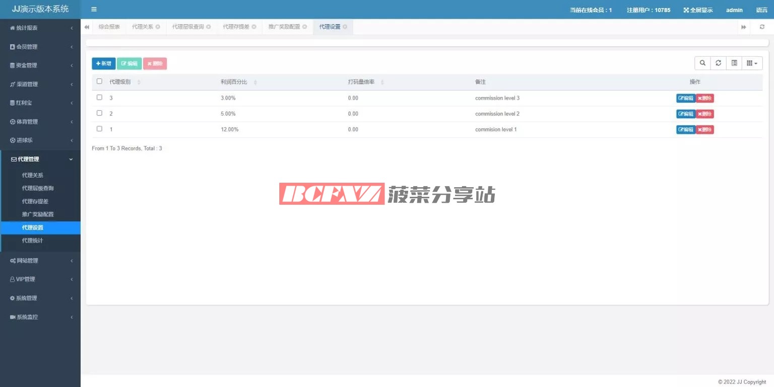 后台可以统一管理 用户、代理、订单以及系统配置等数据。