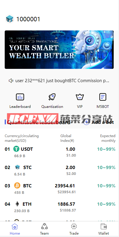 区块链量化机器人系统源码|UniApp前端+FastAdmin后台+Node.js接口
