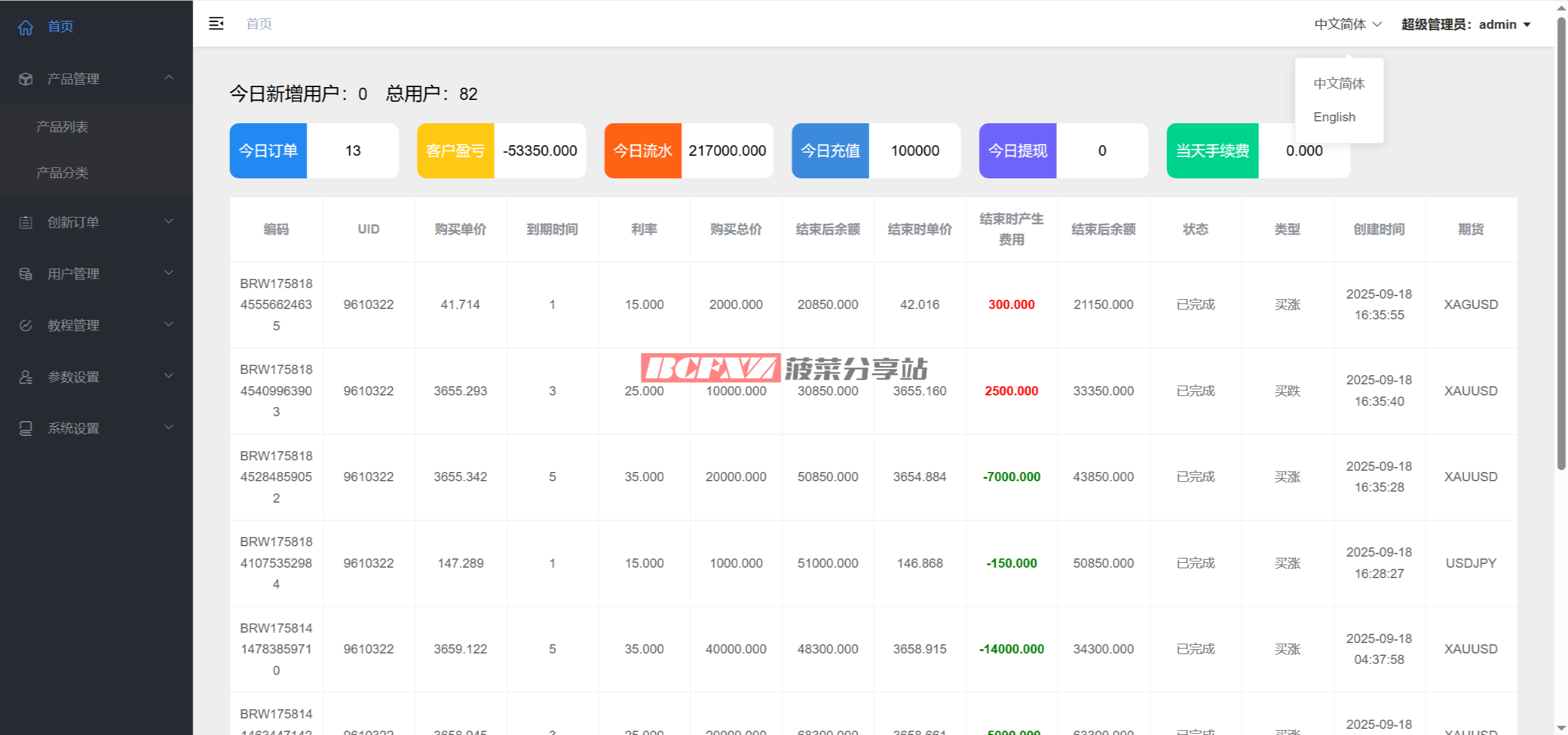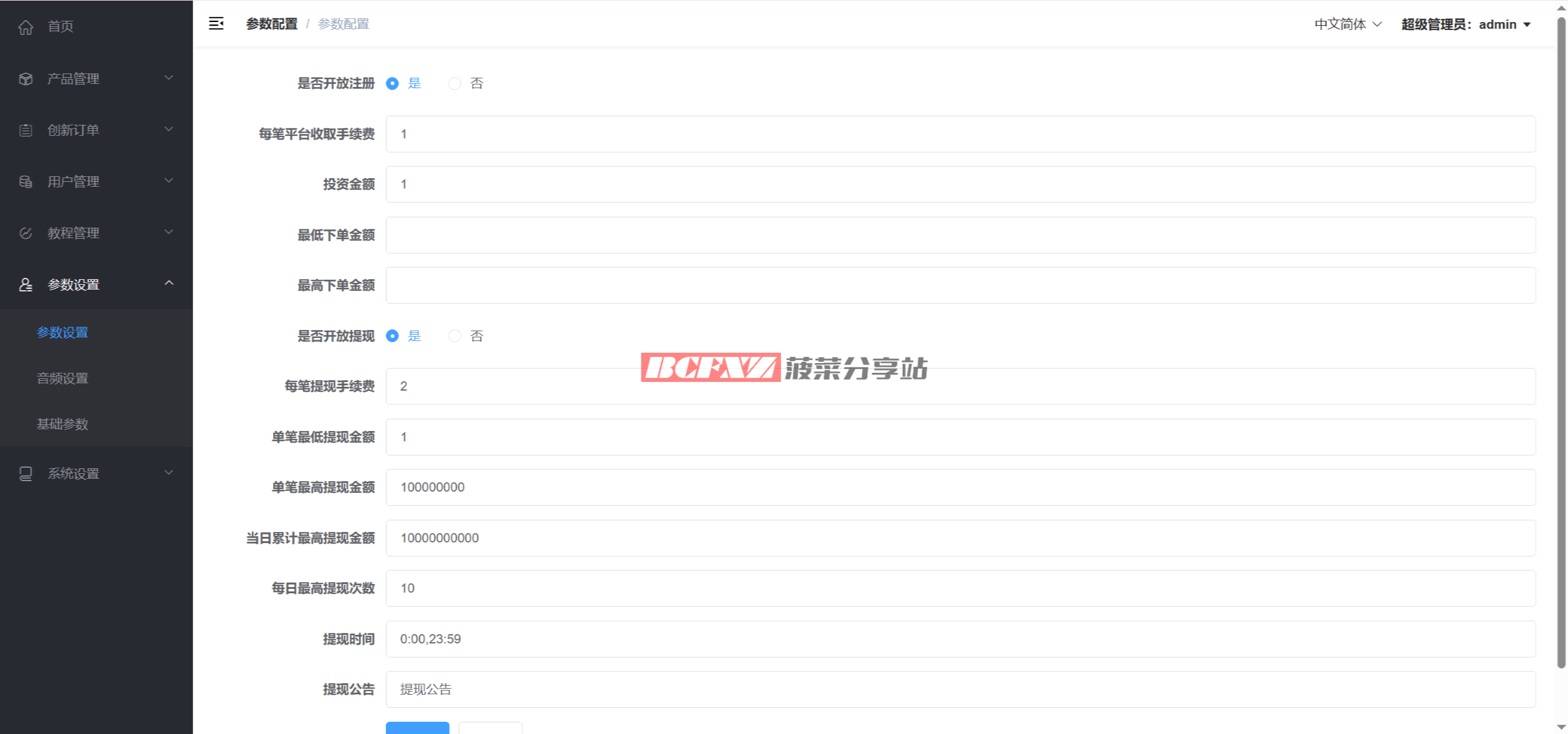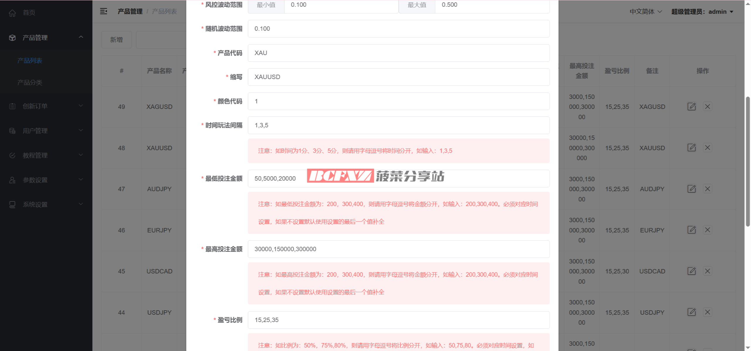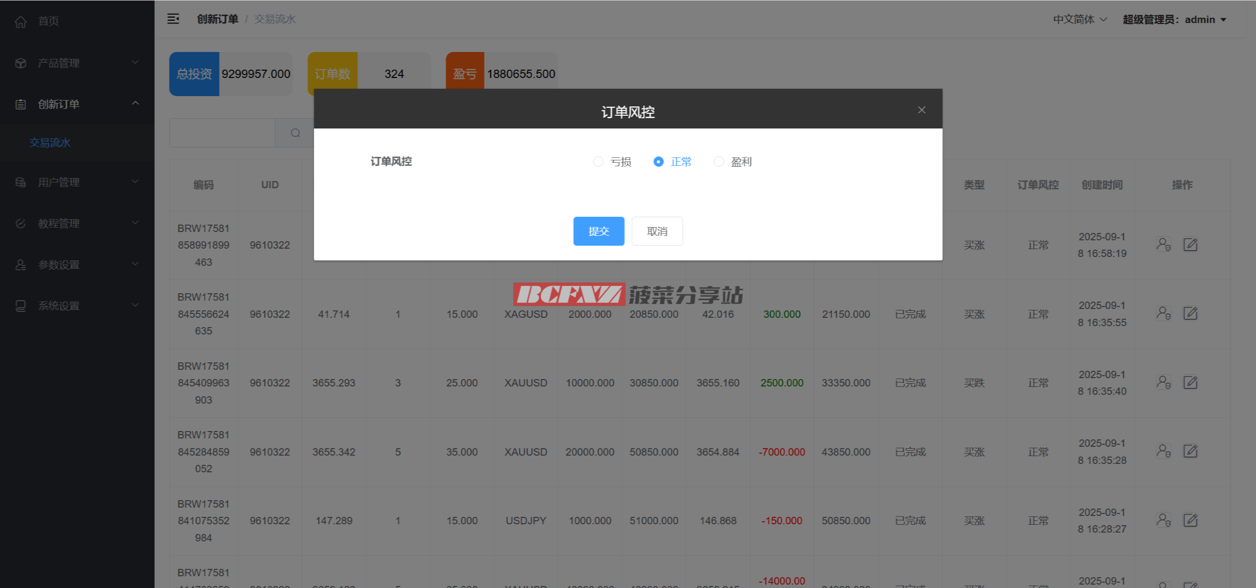 后台包含基础风控与参数调节模块