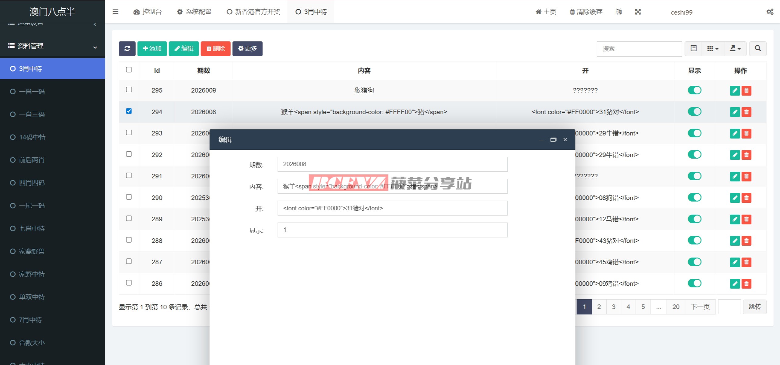 澳门六合彩资料站源码/六合心水图库资料/八点半资料/前端html+后端PHP